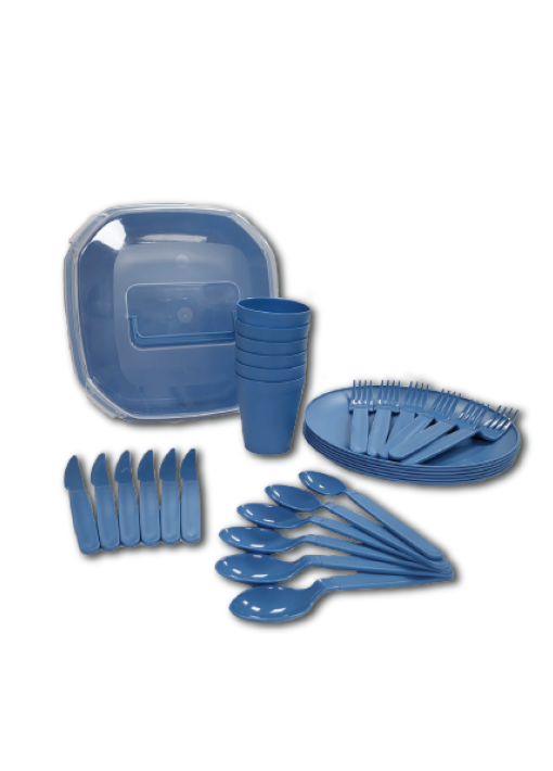 הסט כולל: 6 מזלגות, 6 כפיות, 6 סכינים, 6 צלחות, 6 כוסות וקופסת אחסון